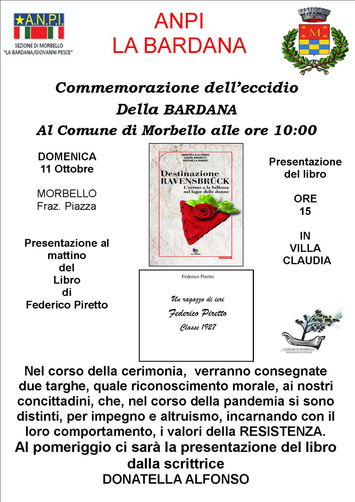 COMMEMORAZIONE DELL'ECCIDIO DELLA BARDANA PRESSO IL COMUNE DI MORBELLO DOMENICA 11 OTTOBRE ALLE ORE 10.00.