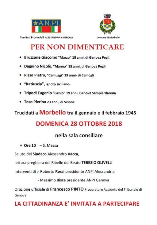 DOMENICA 28 OTTOBRE PRESSO LA SALA CONSILIARE DEL COMUNE DI MORBELLO SI SVOLGERA' LA COMMEMORAZIONE DEI SOLDATI TRUCIDATI A MORBELLO TRA IL GENNAIO E IL FEBBRAIO 1945.