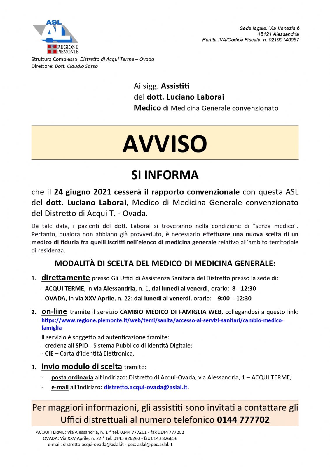 AVVISO DI CESSAZIONE DEL RAPPORTO CONVENZIONALE DEL Dr. LABORAI Luciano,