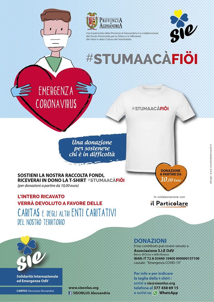 La Provincia di Alessandria, in sinergia con il Tavolo Provinciale per la Difesa e la Diffusione dei Valori e della Cultura del Volontariato, intende patrocinare l'iniziativa di raccolta fondi a favore delle Caritas e degli altri Enti caritativi del nostro territorio promossa dall'Associazione S.I.E. OdV