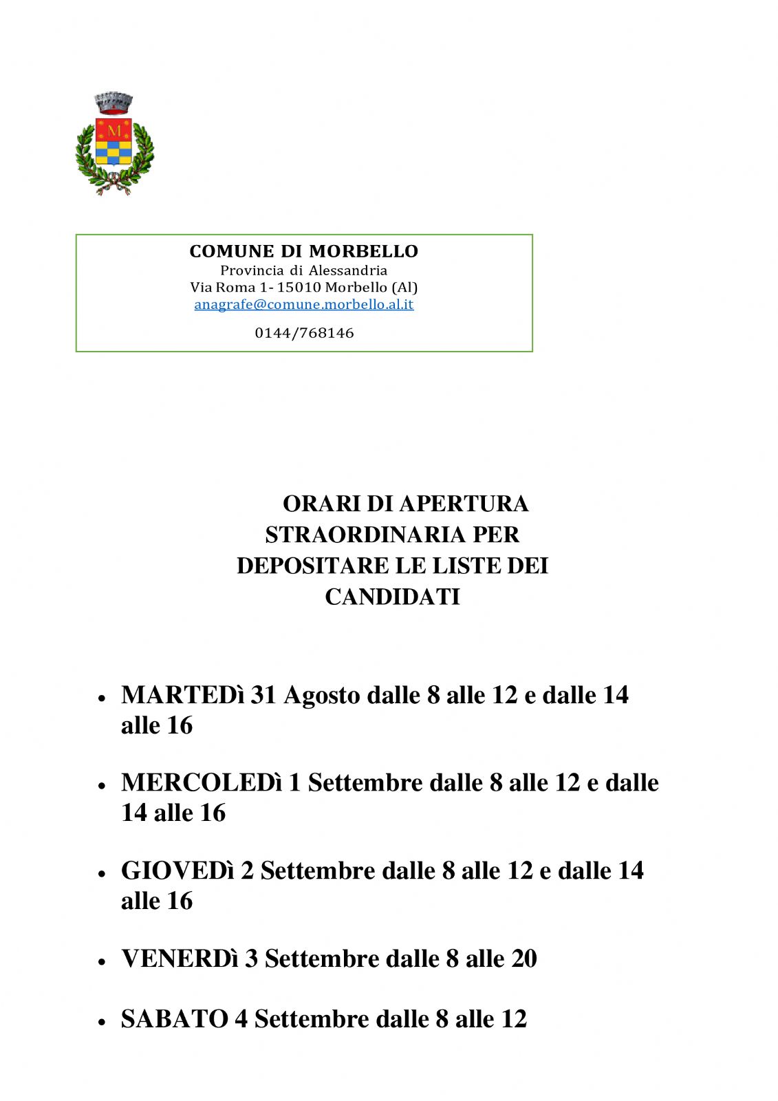 APERTURA STRAORDINARIA PER DEPOSITO LISTE
