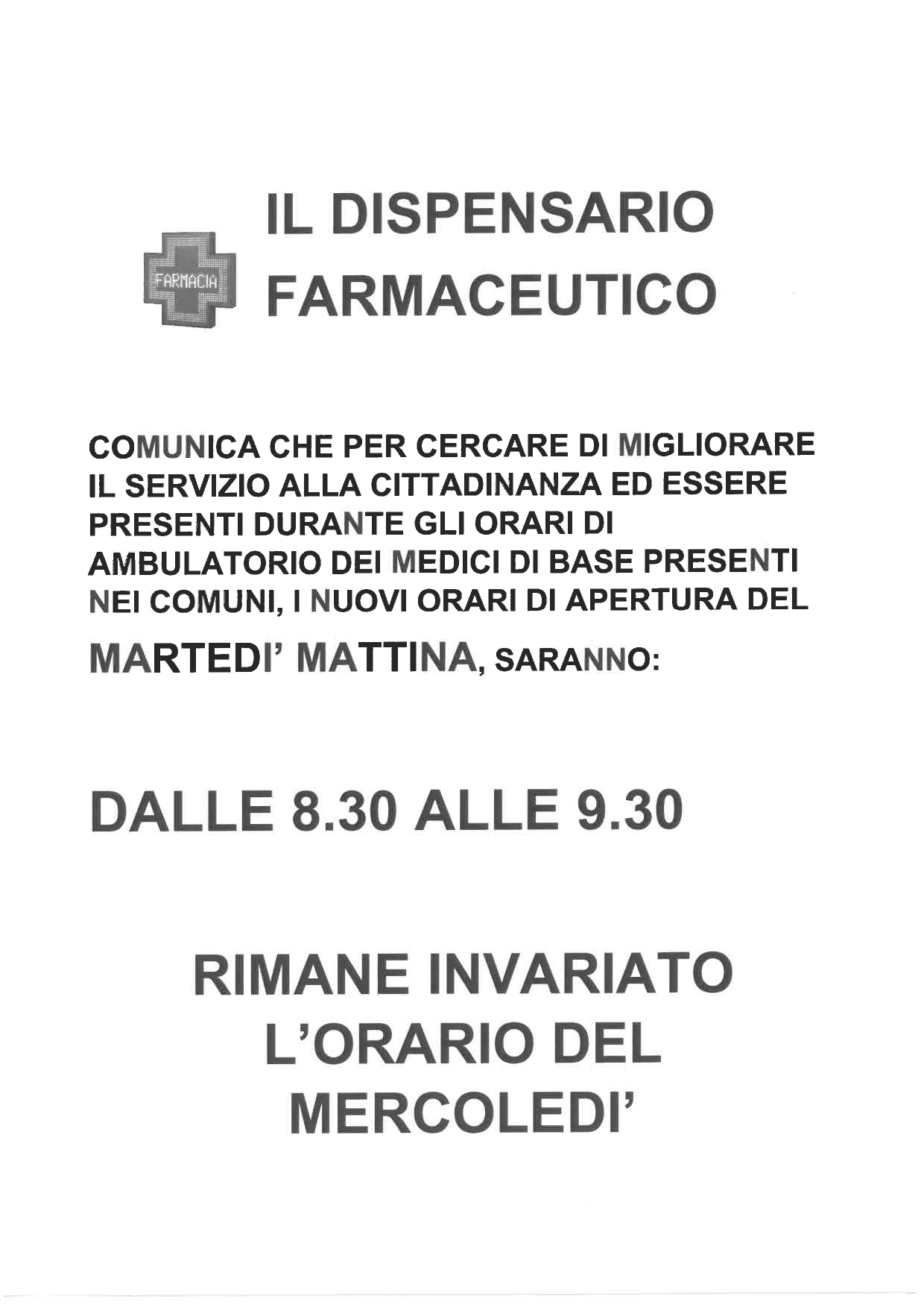 COMUNICAZIONE DISPENSARIO FARMACEUTICO